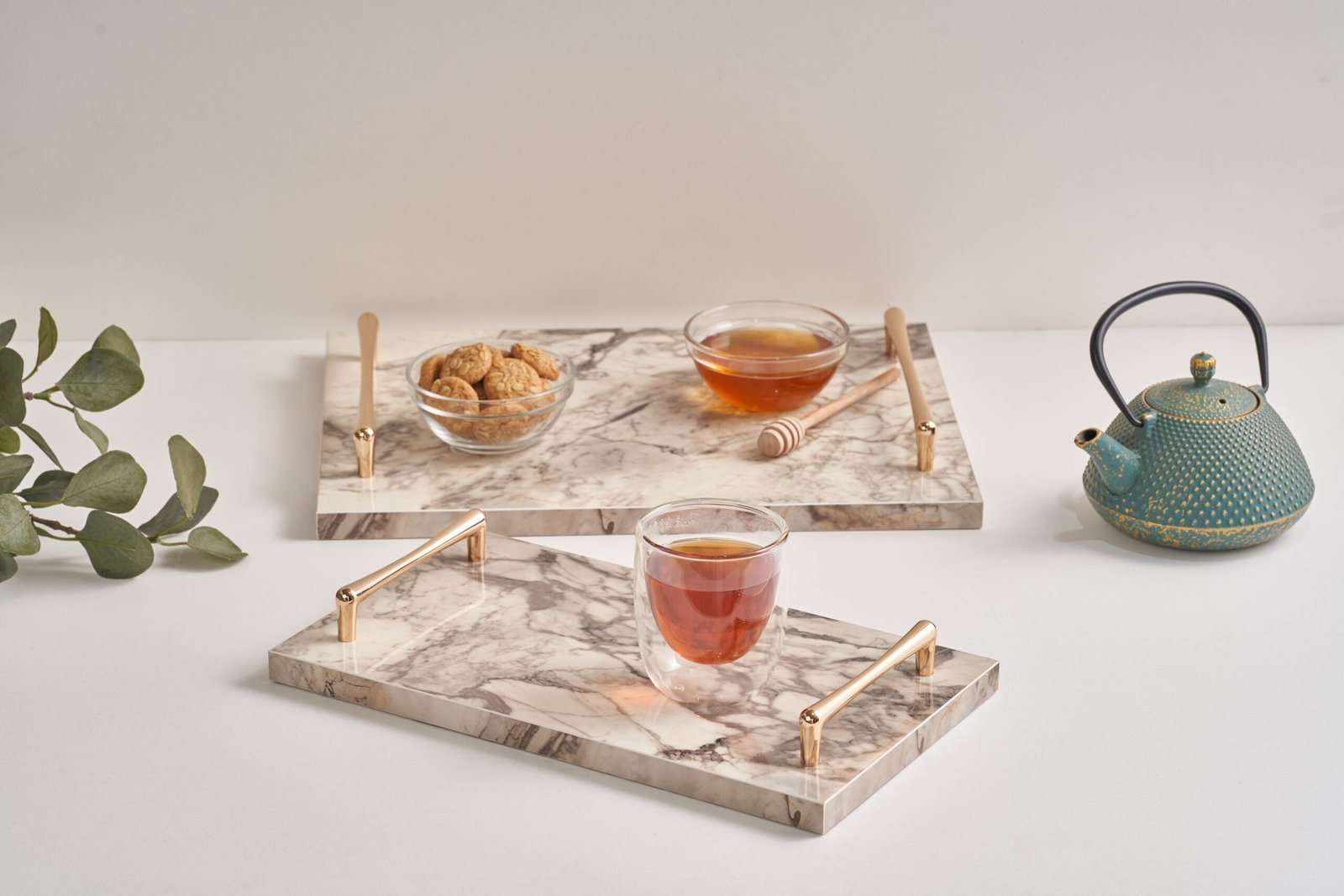 Elevate tea ceremonies with this sleek marble tea tray, designed for both aesthetics and practicality. Its non-porous surface resists stains and water damage, while the natural cooling properties of marble keep beverages at ideal temperatures. Compact yet luxurious, perfect for minimalist or traditional settings.